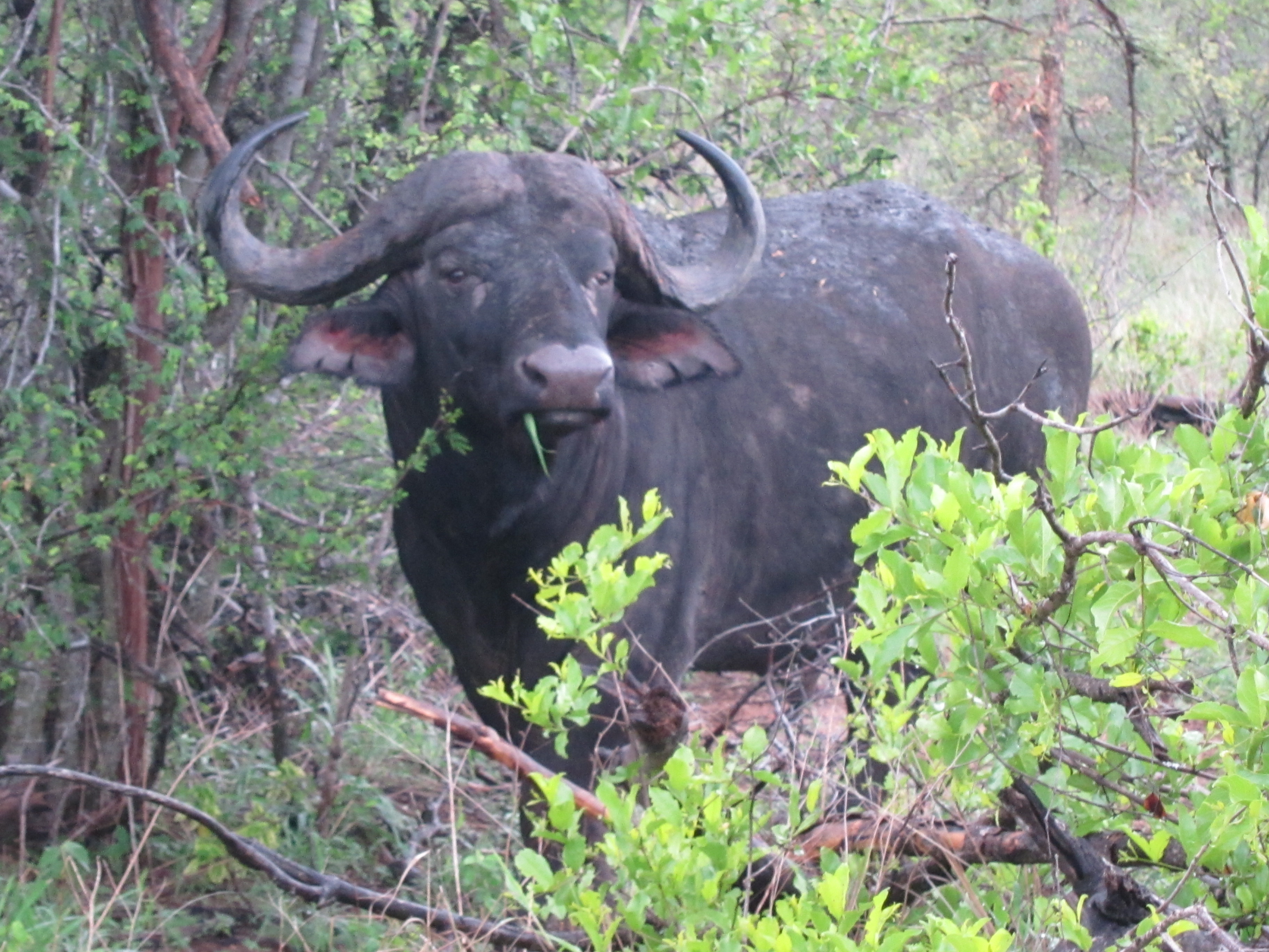 Our fearless tracker, Isaac, sat at the helm of our vehicle and skillfully looked for hints, tracks mostly, that could lead to the sought after big 5. The big 5: African buffalo, Lion, Elephant, Leopard, and Rhino. The Magnificent 7 also includes the cheetah and the wild dog. There are plenty of Elephants to see and many had cute little Dumbo like babies following after mom learning how to throw mud, trample trees and defend themselves against other elephants.  We also had no problem finding rhinos. One day we drove through an immense heard of about 25 buffalo that stood grazing; as we slowly drove through the looks on these massive animals made me swear I could hear their thoughts “you stupid people, why are you interrupting our lunch?”