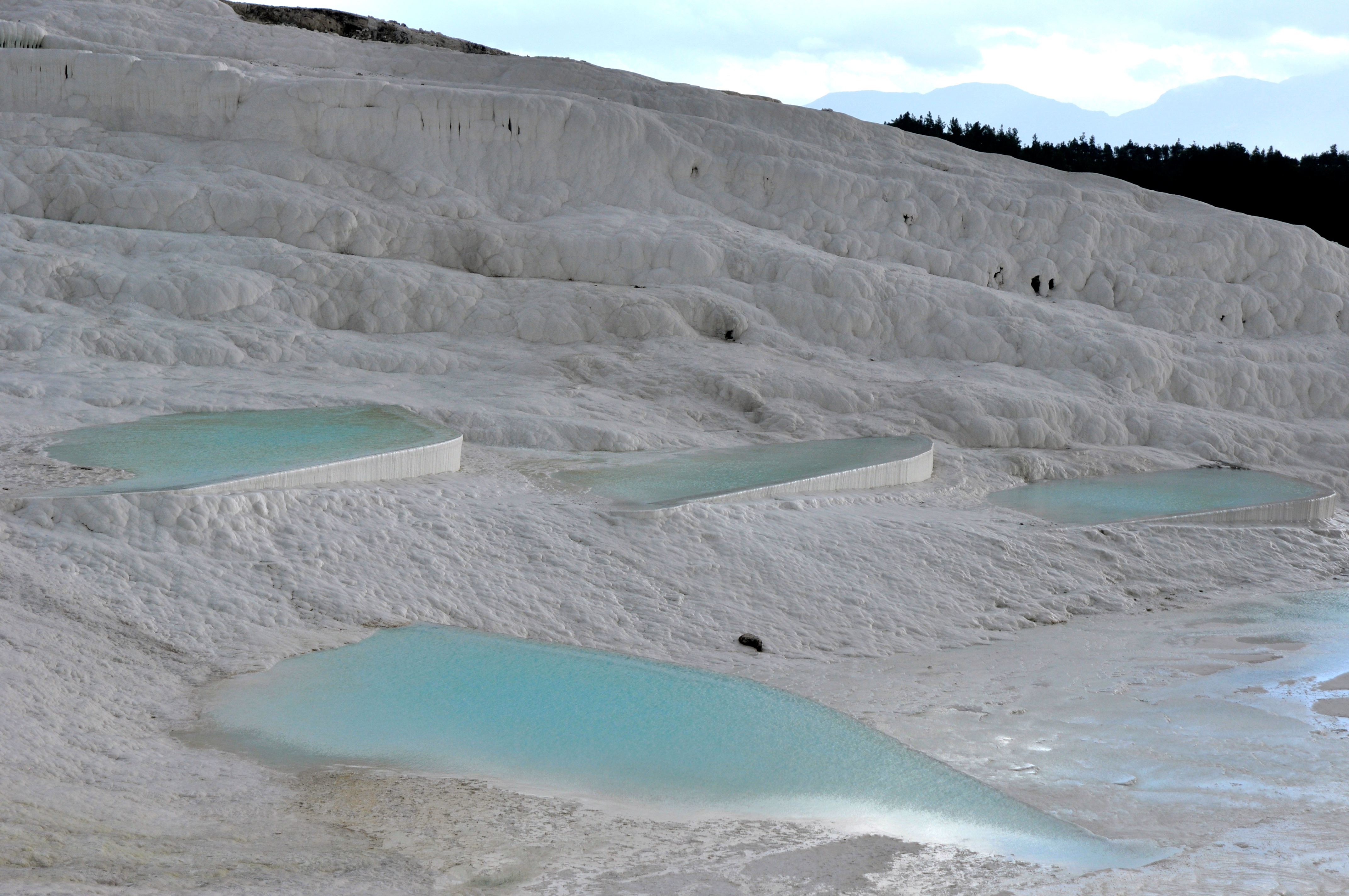 My second tour in the central region was Palmukkale and the ancient Roman city of Hierapolis. I had high hopes for Palmukkale; everything I’d seen portrayed the area as a mystical and serene limestone landscape. Little did I know but most of the photography used of the area is from the 70’s and 80’s when there weren’t any rules about entering the various pools of water. The pictures showed people frolicking in in crochet bathing suits and speedos (this should have been my first clue).