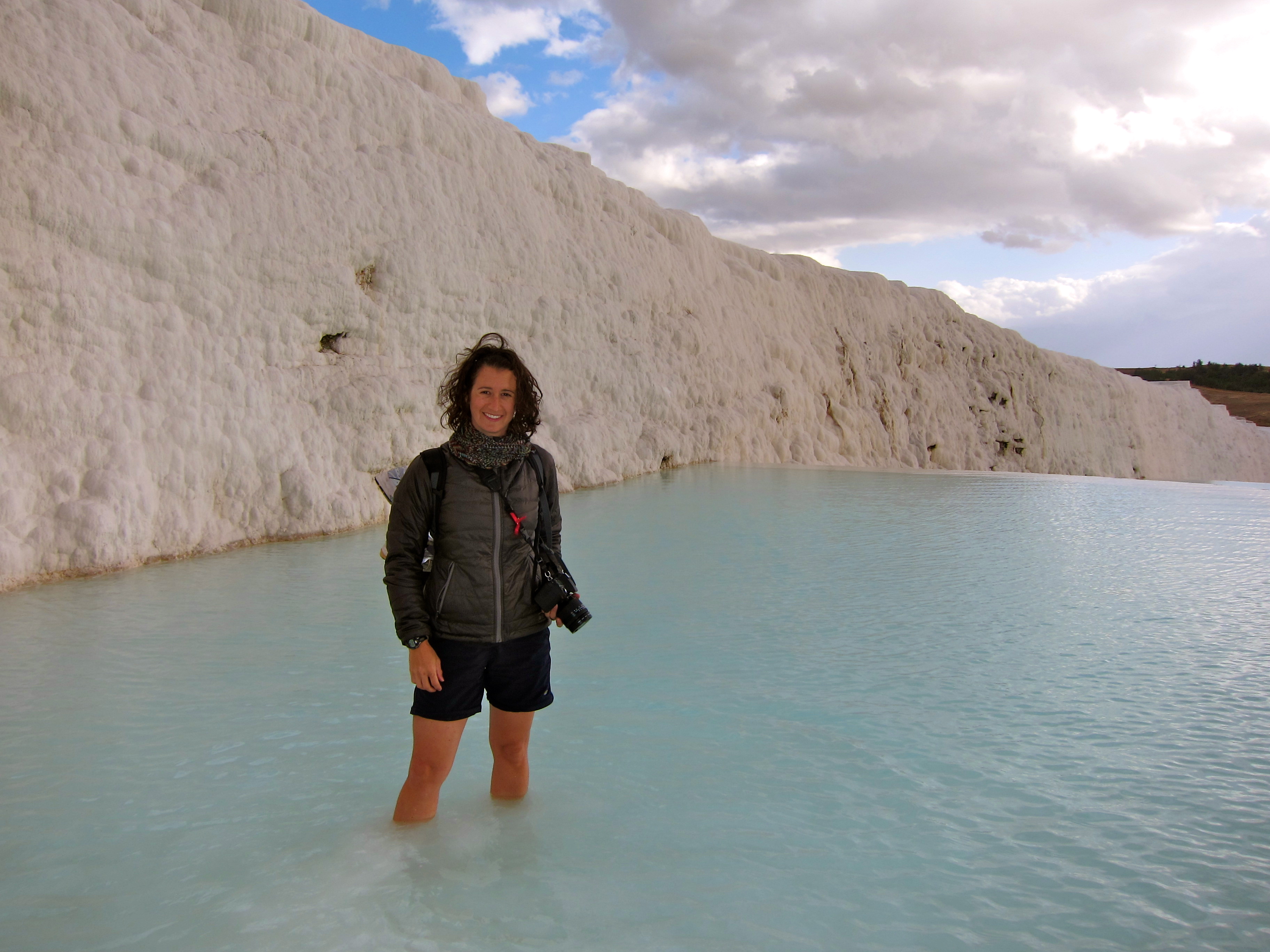 I dipped my toes into the warm spring water and let the fine stone sand squish through my toes; I took my time wading through each of the pools until I made it down to the bottom. I was with a few girls who were on the tour so we did our own form of restricted frolicking and continued back up to the top. Everything was going according to plan when I decided I wanted one last dip in the deep end. Instead of walking around the ledge I opted to take one big step up to climb over.