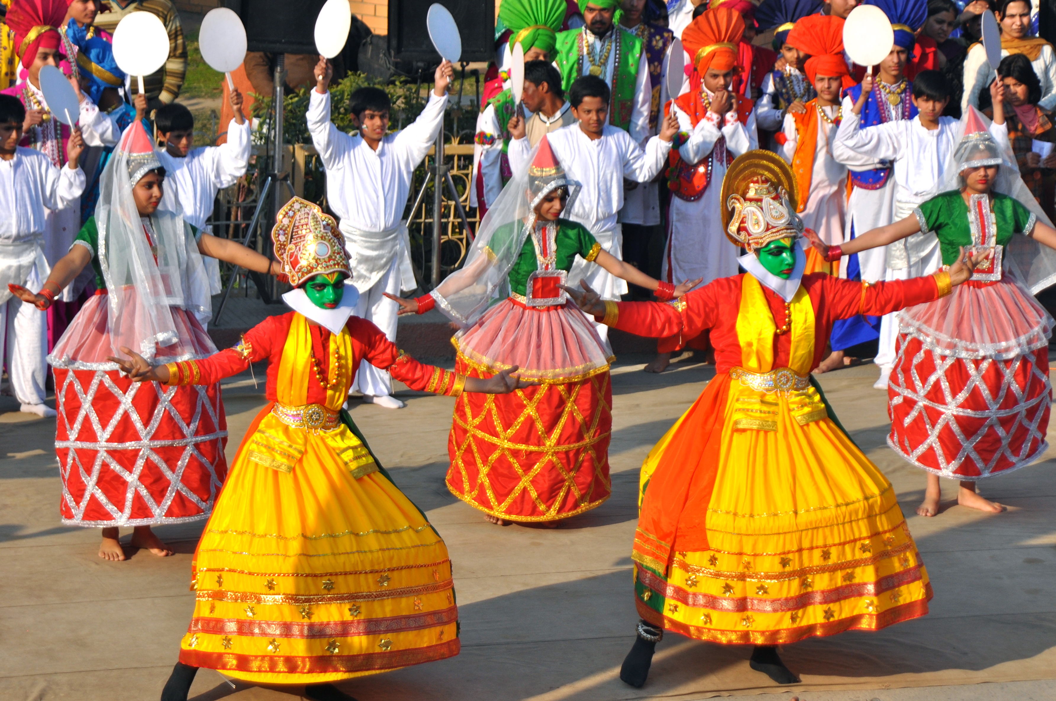 The first part of the show was put on a by what appeared to be school kids. The kids sang songs, performed traditional dances in brightly colored costumes and even did a re-enactment of the Indians succession from the Brits. Then the fun really began. They passed out popcorn, dimmed the lights and the announcer came on….not quite, but they might as well have. Grown men started high