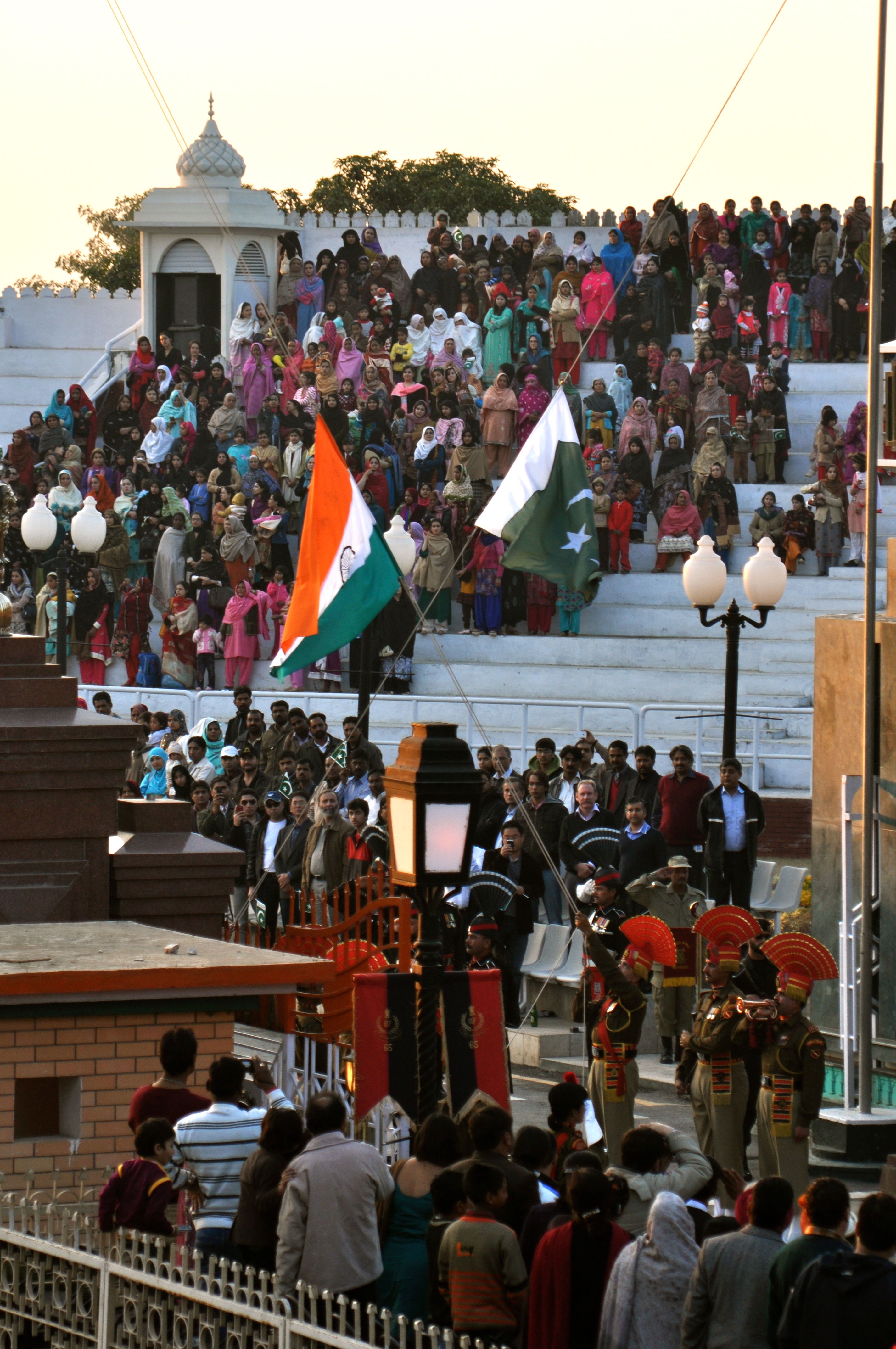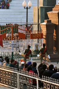 outlandish they flung open the gates and did more saluting and stomping in unison with the Pakistani brigade! After about 10 minutes of high-stepping and other shenanigans they artistically brought down the flags and theatrically closed the gates. After the crowd died down I found my way back to the clown car for a slow ride home in the dark thinking about how there are so many mouths to feed in India (as well as in Pakistan) yet this is how the government chooses to spend their resources each an every day.